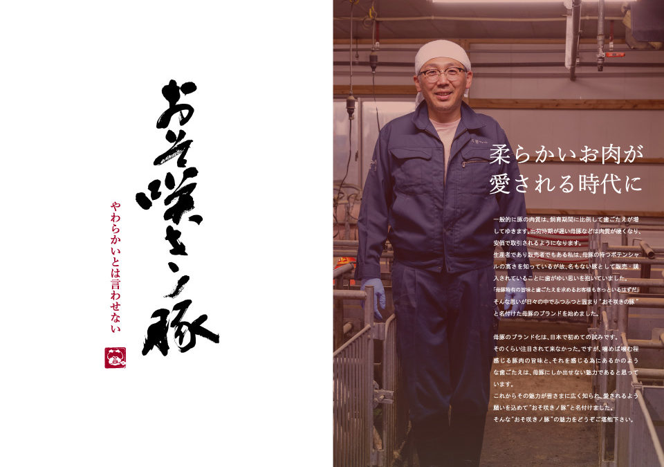 そのお母さんが「おそ咲きノ豚」です。母豚ならではの肉の大きさ、たくましいうまみと歯応えは、これまでの豚肉になかった「個性」。久慈ファームが自信を持ってお届けする、初の母豚ブランドです。